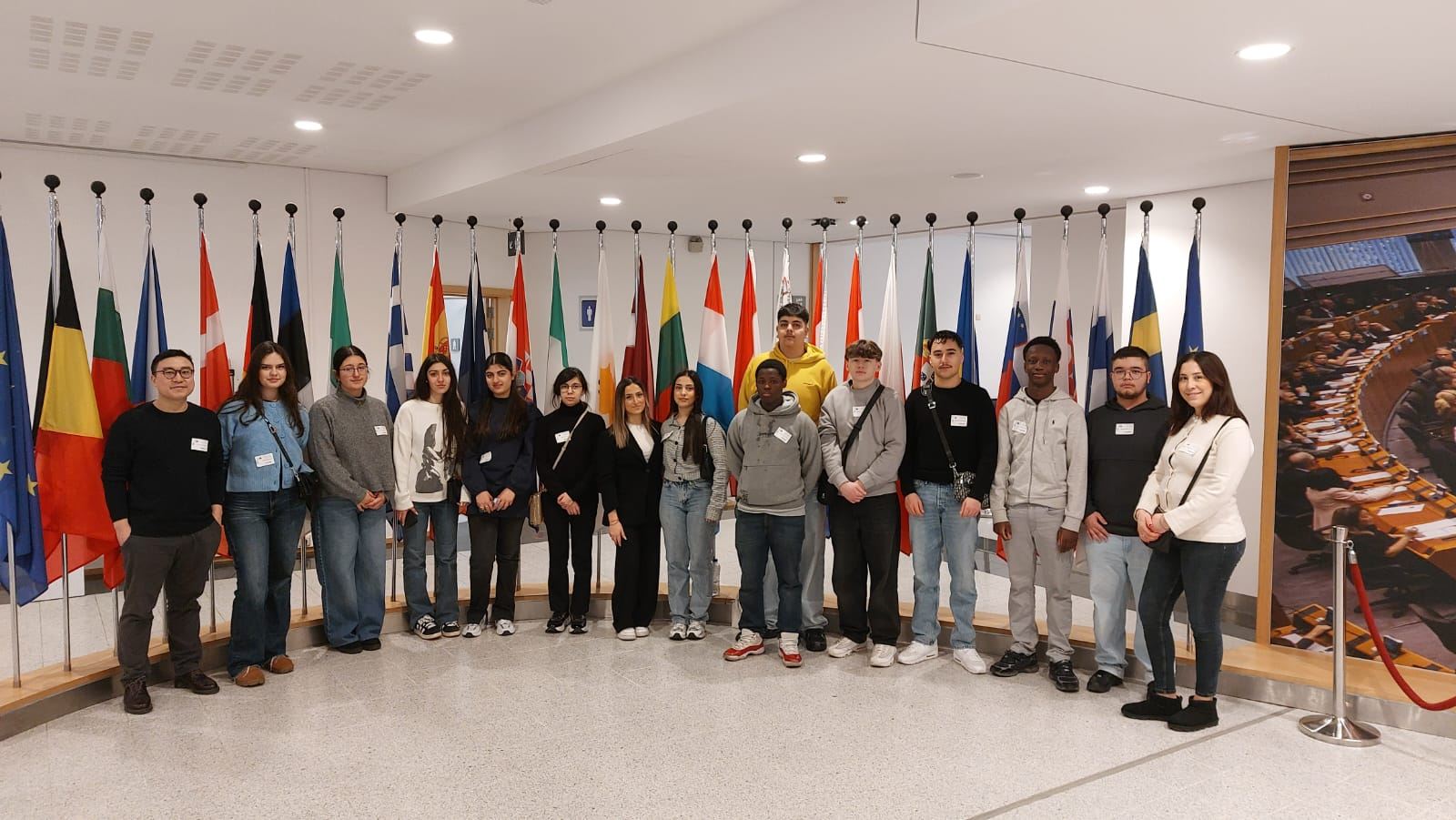 Vom 12. – 15. Februar 2025 fand unsere Kursfahrt nach Brüssel und Lille, statt. Die Schüler*innen sind mit vielen Eindrücken und neuen Erfahrungen sowohl in politischer und kultureller als auch in sprachlicher Hinsicht heimgekehrt. Hier zwei Gruppenbilder aus dem EU-Parlament und ein Gruppenfoto von einem Tagesausflug nach Lille.